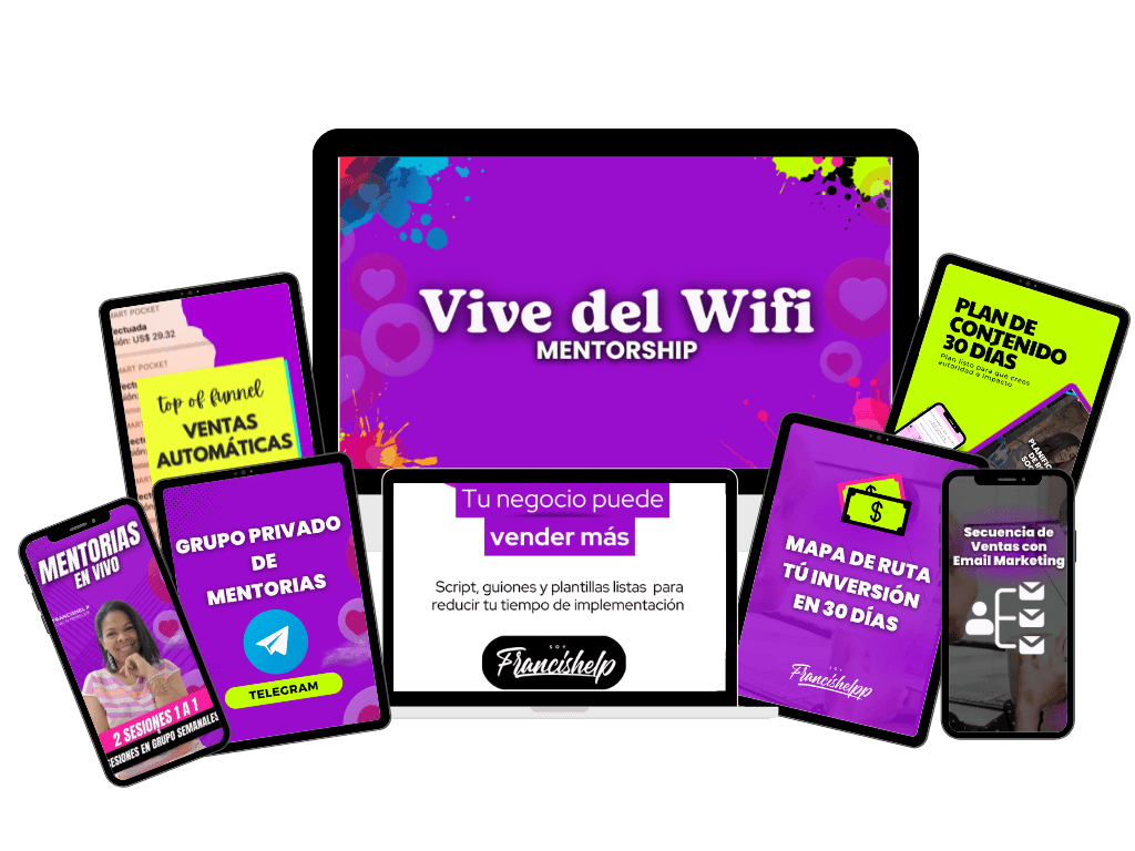 También tendrás acceso a mi comunidad privada donde también tendremos sesiones semanales para tu mentoria "Vive del Wifi".